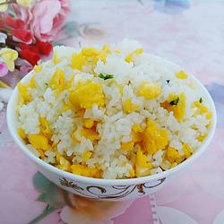 8.Pour in the scrambled eggs.Stir fry over medium heat for 3 minutes.Soft and delicious egg fried rice is ready.