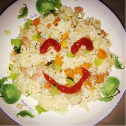 4. Stir-fry for two minutes to fully combine the rice and diced vegetables.Sprinkle pepper according to personal taste and stir-fry a few times., take it out of the pot