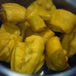 2. Mash the pumpkin, add sugar while it is hot, add yeast when it is warm, and then add flour! Cover with plastic wrap and wait until doubled.