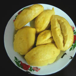 - 1. Cut the pumpkin into pieces and steam in water until soft, let cool, add yeast powder, stir the sugar and set aside to melt