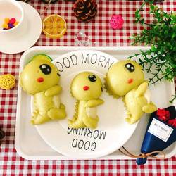 10. Take 3g of white dough and roll it into an oval sheet and stick it on The side of the body is made into the belly of a dinosaur