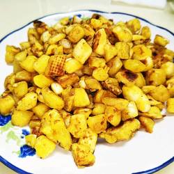 4.Translate Fry until the egg liquid coats the buns, then add thirteen spices and salt, mix well and serve!