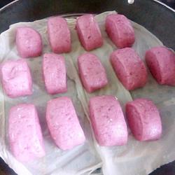 1.Purple sweet potato, flour, and dry yeast are mixed together to make steamed buns.Ferment,