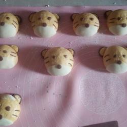 2. Knead 100g of flour into white dough, take a small piece of dough and knead an appropriate amount of cocoa powder to make the expression of the steamed buns.Use a small piece of yellow dough to make ears