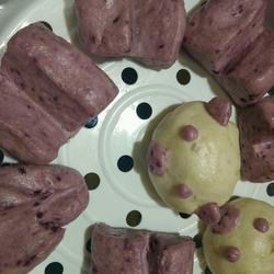 3.Mash the steamed purple and white potatoes and add yeast respectively.Use powdered flour and white sugar to knead the dough