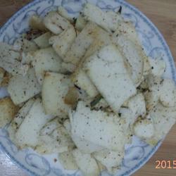 3.Put salt, chicken essence and other seasonings in sequence; in the pot Keep stirring until the steamed bun slices are fragrant and yellow; it is ready to be taken out of the pan!