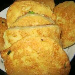 1. Cut the steamed buns into thick slices