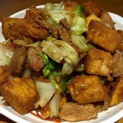 4.The onions, ginger, the small tomatoes I used, and the meat were cut into pieces.I didn’t take pictures during the frying process.Just like you usually stir-fry meat and vegetables, pour a little oil into the pot, heat the oil, put the meat in the pot, stir-fry, and add the onions.Continue to stir-fry Ginger Thirteen Fragrance until the moisture in the meat is gone.Pour in some soy sauce and vinegar.Stir-fry for one minute.Add the cabbage and small tomatoes.Stir-fry until the cabbage is almost cooked.Add the diced steamed buns that were fried before.Sprinkle a little salt.If you have bone broth at home, add some bone broth.If not, add some hot water and stir-fry for two minutes.