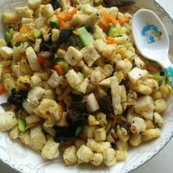 6.Put the chopped ingredients into the pot and stir-fry, add salt and chicken essence