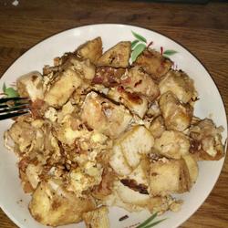 7.Pour the steamed buns and eggs into the pot and fry until cooked, then put them on a plate