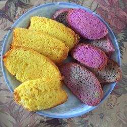 1. Slice the steamed buns into moderately thick pieces.You can choose any steamed buns.I used the leftover purple sweet potato steamed buns made two days ago.Pumpkin steamed buns
