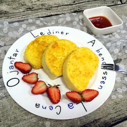 2.Clip a piece of steamed bread and dip both sides of the piece into the egg liquid.