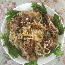 Steamed buns, ribs, pickled vegetables and potatoes ( ) | Egg vermicelli, green onion, ginger, peppercorns and cumin powder ( ) |