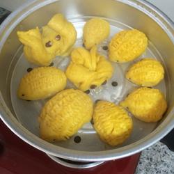 1. Steam the pumpkin and make it puree.Add flour and mix well.Add nitrate powder and let it double in size