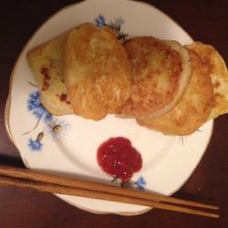 It’s great to slow-fry cold steamed buns over low heat with tomato sauce.You can add some salt to the egg liquid