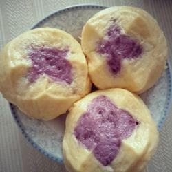 4. Wrap it into a bun, with the folds facing down, and use a knife to make a cross on it to expose it Purple