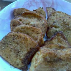 3.Steamed bun slices with egg liquid on both sides.Heat the pan and fry.tasty.