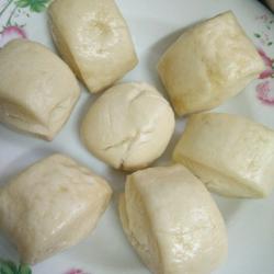 1. Pour the warm water with melted sugar and yeast powder Add in flour and knead into dough.