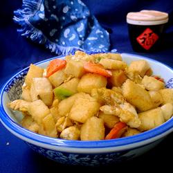 7.Add steamed bun pieces.Add salt and dark soy sauce