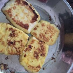 1.Cut the steamed buns into 2 cm slices