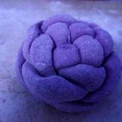 2. Roll the purple sweet potato into puree to prevent uneven color when kneading the dough.