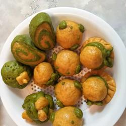 Spinach juice, carrot juice, flour ( appropriate amount ) | Yeast ( appropriate amount ) |