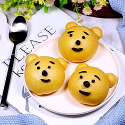 16. Put the other two small ones on top to make ears, and take the black cocoa powder dough Twist a little into strips to make the expression nose, eyes, mouth and eyebrows.