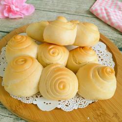 14. Ding dong time is up, take out the steamed bun roll, the color is a bit light, the time and temperature are both It's the same as toasted bread, but it's not as colorful as bread and has a little crack, which is not ideal.