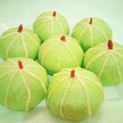 9. Dip the prepared noodles into water and paste them on the steamed buns.Chengmizi