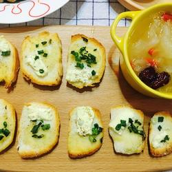 3. Cut the butter and cheese into small slices, put them on the steamed bun slices, sprinkle with a little green onion, Appropriate amount of salt, appropriate amount of black pepper
