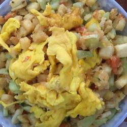 How to make fried diced steamed buns with tomatoes, cucumbers and eggs
