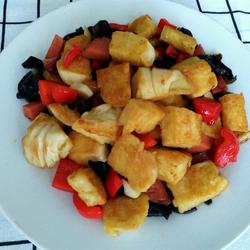 7. Let’s stir-fry ham, bell pepper and fungus again!