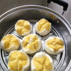 1.Knead the two kinds of dough until it expands to twice its original volume, then mix it again to drive out the gas, cut it into small pieces, and roll the white dough into dumplings.Skin shape, wrap the yellow dough and let it sit for 20 minutes for secondary fermentation
