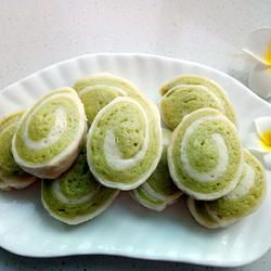 10. Overlap the spinach dough and milk dough, stick them together tightly, and then work from bottom to top Roll into long strips, be sure to roll tightly.