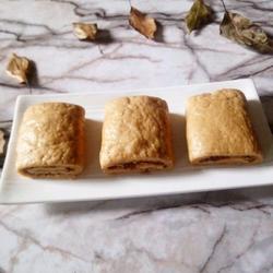 9. Roll the dough into a long strip, brush a small amount of oil on it, sprinkle with red dates, Chopped walnuts.