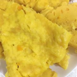 2.Crush the steamed pumpkin into pieces with a spoon.