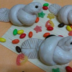 7.Put two red beans on the pigeon’s head as the pigeon’s eyes, and pinch the pigeon’s mouth to a point ( Because I did it in a hurry, I didn’t pinch the tip of my mouth, so the effect would be compromised)