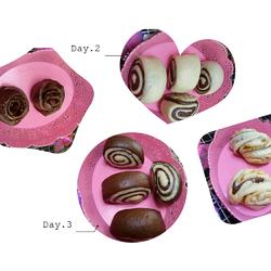 9. After kneading it into a ball, use a rolling pin to roll it into a large piece, with two colors of the same color.