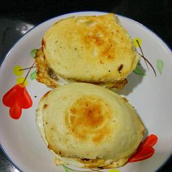 7.Put another piece of steamed bun on top of the egg and you can eat