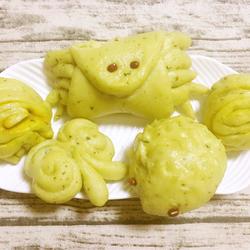 7. Made crabs, butterflies, piglets, hedgehogs, and flower rolls.For the crab, first knead a small piece of dough, roll it into a tongue shape, roll it into four long strips, cut the fourth long leg from the edge with a knife, and place the four strips on the rolled tongue-shaped surface.First fold the lower tongue-shaped surface up, then fold the upper part down, and use red adzuki beans to make eyes.I didn’t take any step-by-step pictures, and my language skills are limited, so I may not be able to explain it very clearly, so I’ll just give it a try.