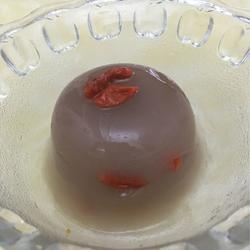 4.Put the paste of kudzu root powder into half of the container, and spread the prepared red dates and wolfberry , then fill it with kudzu paste.Be careful not to make the paste too thin, otherwise it will not be easy to shape.Red dates and wolfberries can also be replaced with your favorite fruits.