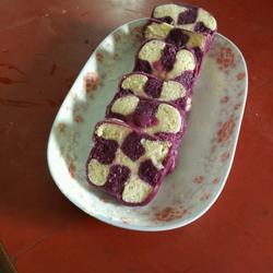 4.After folding the noodles, use a rolling pin to press the last piece of purple dough into a pancake shape and wrap the entire square dough piece, and place it Put the steamer into a steamer and turn to medium heat and steam for 30 minutes (the dough cracked a little because I forgot to adjust the heat)