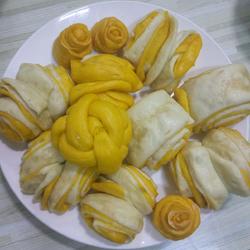 />5.When making roses, the dough should not be too thin.The distance between the dough sheets can be a little further, so that the steamed petals have layers