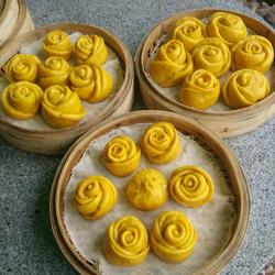 Pumpkin is steamed and mashed.No need to add water, just add flour and knead dry.Steam for about fifteen minutes