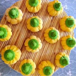 20.Use spinach and flour and press into small cakes to cover the folds at the top of the buns, make them into pumpkin shapes, and create a good shape