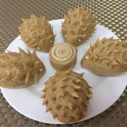 14.The white hedgehog steamed buns are made in the same way, just replace the brown sugar with white sugar, and use red date skin for the eyes