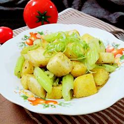 6.Put in celery, salt, and stir-fry the celery and steamed buns quickly until the flavor is added.