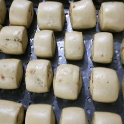 5.Press the combined flour into a dough and roll it into a cylinder as shown in the picture