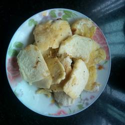 5. Fry the steamed bun slices dipped in egg liquid in a pan until golden brown on both sides and you're done