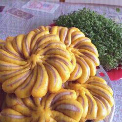 1. Divide the flour into two parts, mix less with the cooked pumpkin, add yeast and water and knead Evenly, it becomes a yellow pumpkin dough; add yeast and water to the excess part and mix it into a white dough;